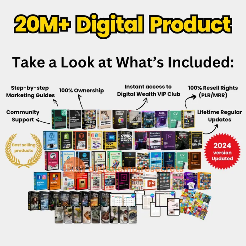 20 Million+ Done For You Premium Digital Products bundle Digital Downloads, perfect for content creators, graphic designers, video editors, developers, and digital entrepreneurs!