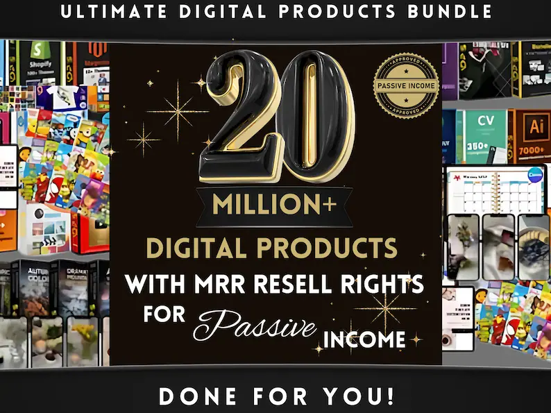 20+ Million Digital Products Bundle Resell MRR PLR, Digital Downloads, Passive Income, Luxury Reel, AI Prompt, Faceless Social Media
