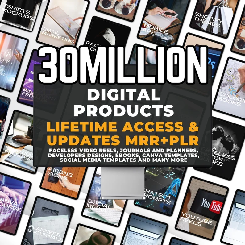 30 Million Digital Products Bundle MRR PLR | Lifetime Access and Update | Passive Income Digital Products and E-books Courses