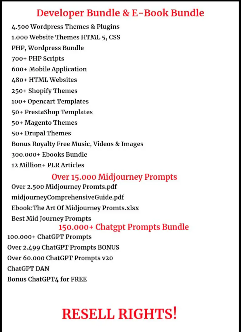 Begin your journey towards effortless earnings with our extensive 20M+ Master Resell Rights Digital Product Bundle! Explore a vast library of digital goods ripe for reselling, providing you with a steady stream of income. This bundle is akin to stumbling upon a treasure trove brimming with pre-made digital content, all complete with Master Resell Rights (MRR) and Private Label Rights (PLR) – ensuring every sale directly enriches you!