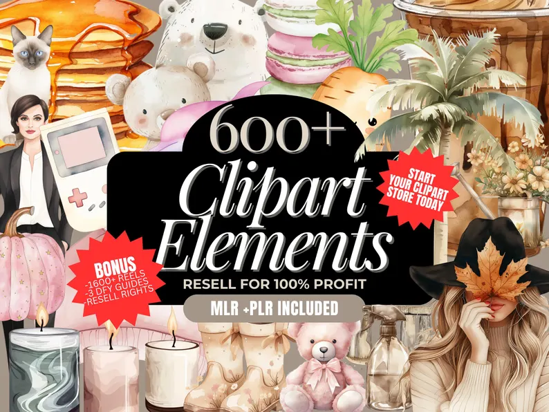 ✓ ** 600+ Clipart Elements Pack** with transparent backgrounds | Delivered via Google Drive