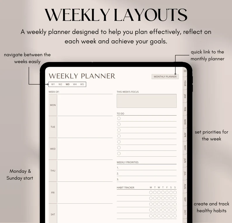 Digital Planner Undated, iPad & Android Planner, GoodNotes Planner, Digital Calendar, Daily, Weekly, Monthly Journal, 2024 2025 iPad Planner